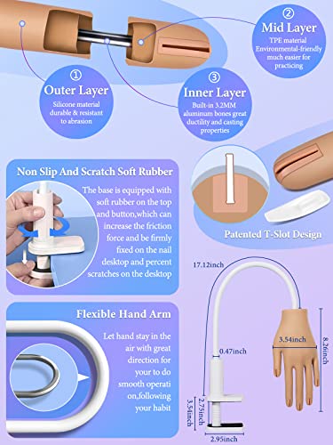 • 💝【Sturdy Fake Hand】This is a new type of groove structure,compared to other brands of practice hands,even if you use professional electric nail drill to grind the nails at high speed,the nails will not fall off.Come with a sturdy stand,the base is equipped with a soft rubber non-slip,scratch-resistant,which increases friction and securely fastens to the nail table top.Gooseneck can be rotated 360°.You can rotate the angle of the gooseneck at will to satisfy your needs.