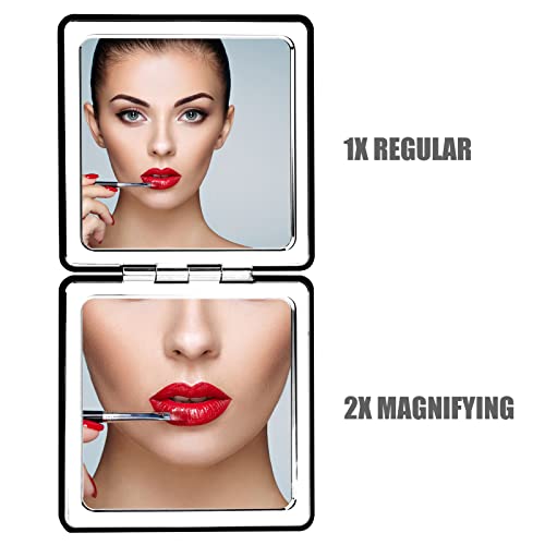 - 【Double-Sided Square Magnifying Mirror】One side 1X regular mirror provides a clear true image; The other side 2X magnifying mirror allows you see with high clarity even the small details.
