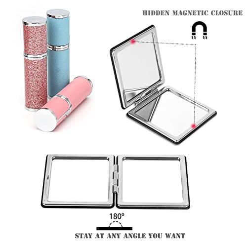 - 【Foldable Design with Magnetic Opening and Closing】This black elegant pocket mirror can be opened to a full 180 degrees to lay flat or can stay at any angle you want, suitable for daily, work, travel or business use.