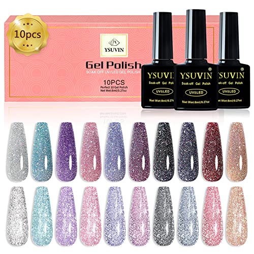 - 10x 8ml Reflective Glitter Gel Polish: There would be well-selected 10 gorgeous made of the most iconic and trendsetting all-new glitter colors, sparkles effect display a stylish, modern manicure and suitable for night dancing parties.