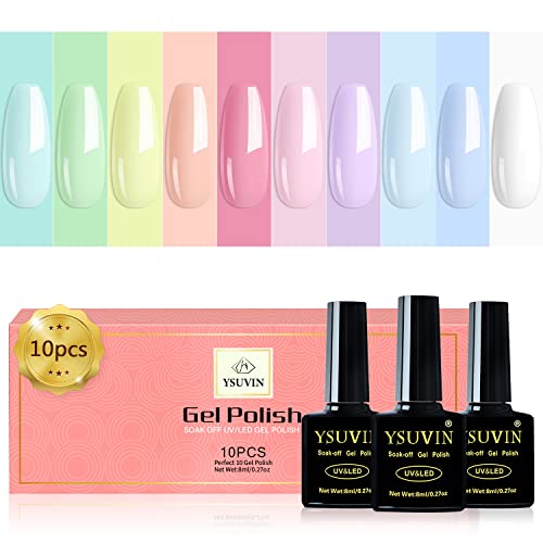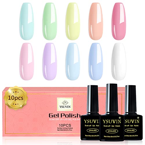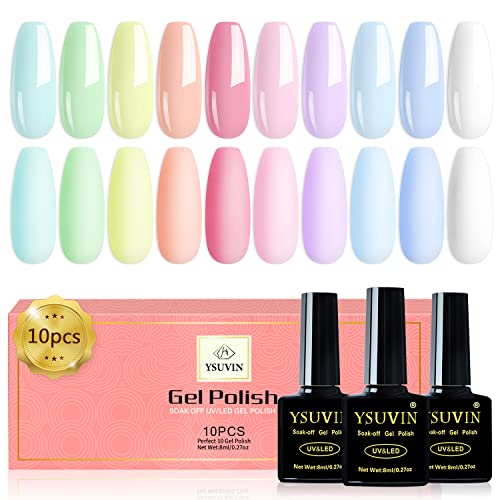 Yueshop 10pcs x 8ml Nail Gel Polish Macaron Candy Pastel Series Set 10 Colors Blue Pink Green Yellow White Soak off UV/LED Gel Nail Polish Long L