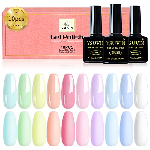 Yueshop 10pcs x 8ml Nail Gel Polish Macaron Candy Pastel Series Set 10 Colors Blue Pink Green Yellow White Soak off UV/LED Gel Nail Polish Long L Yueshop 10pcs x 8ml Nail Gel Polish Macaron Candy Pastel Series Set 10 Colors Blue Pink Green Yellow White Soak off UV/LED Gel Nail Polish Long L