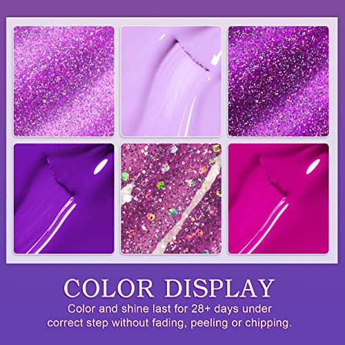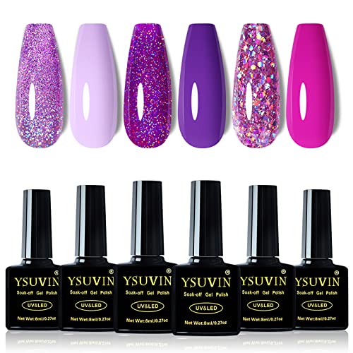 - Grape Purple Glitter Gel Nail Polish: Yueshop well-selected 6 gorgeous made of the most iconic and trendsetting all-new glitter colors, sparkles effect display a stylish, modern manicure and make you shining in life.