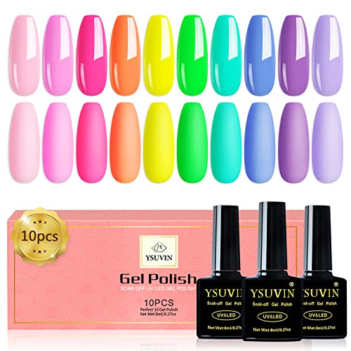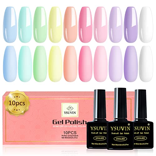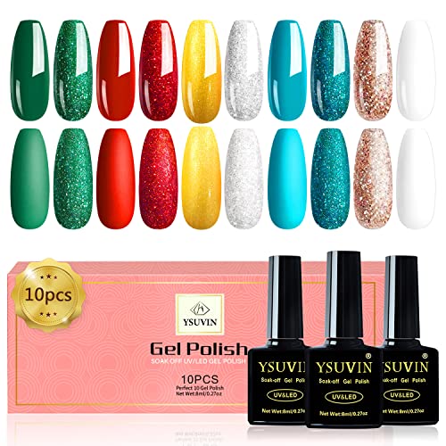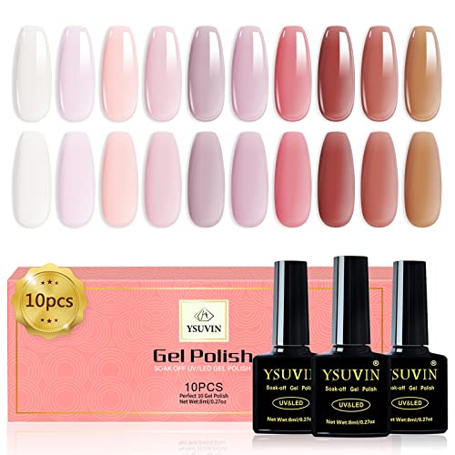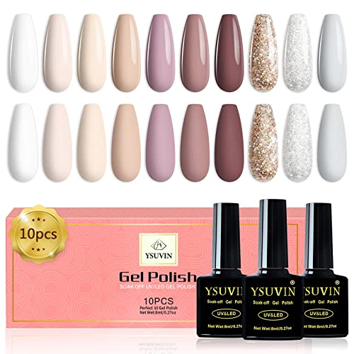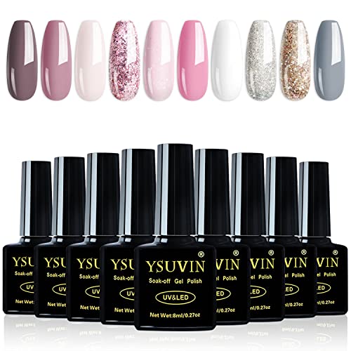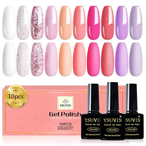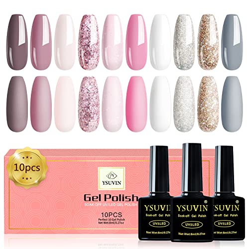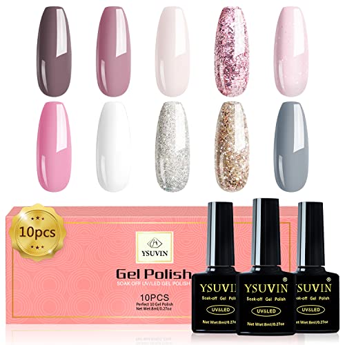 - Gel Nail Polish Set: Ysuvin is the perfect set for a classic for a modern take on the style! Shades range from bright to baby pink with bright white for the tips. 10 elegant gorgeous Manicure gel nail polish set - white pink glitter gel polish of popular and trendy colors.