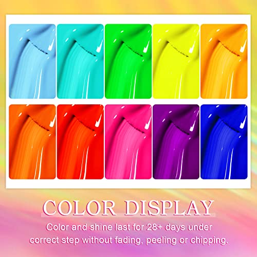 - 【Neon Rainbow Nail Polish Kit】Yueshop well-selected 10 gorgeous made of the most iconic and trendsetting all-new rainbow colors, purple blue green orange design attractive appearance and creative art nails, display a stylish, modern manicure,It also can be used to make various nail styles.