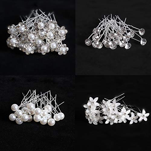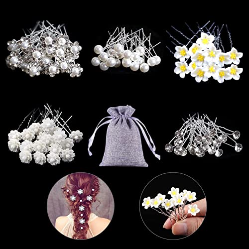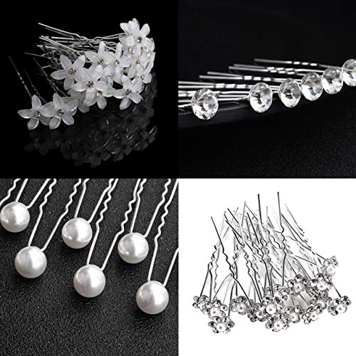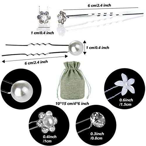 - 🌸【Package Includes】50pcs wedding hairpins, have 4 different styles of bridal hair clips (pearl flower*15, pearl*15, rhinestone*10, crystal flower*10), with a nice little bag for easy storage, and it can also be used as a gift wrapping bag.
