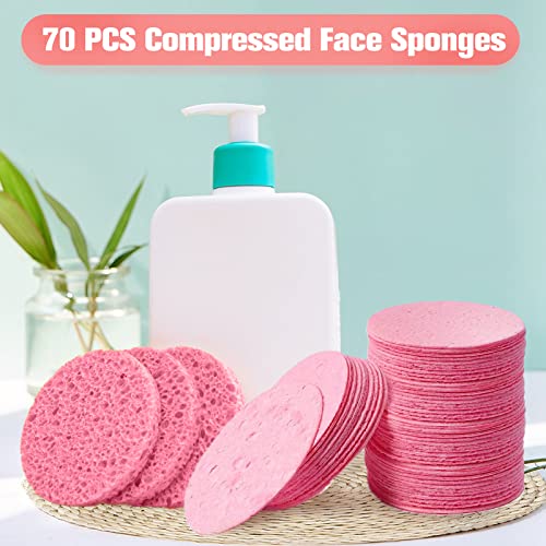 ZOCONE 70 PCS Face Sponges for Cleansing Exfoliating, 60mm/2.4In Natural Wood Pulp Cotton Face Sponges Reusable Compressed Facial Sponge, for Mak