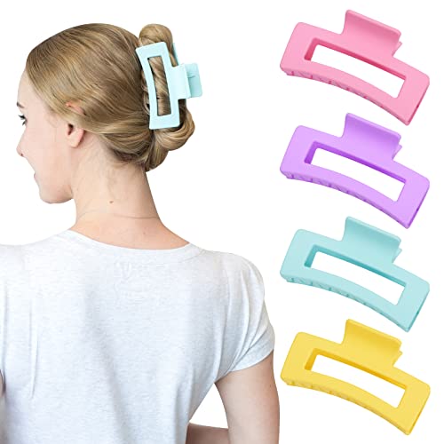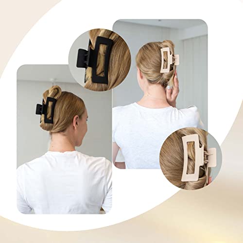 Zou.Rena Hair Claw Clip-Claw Clips for Thick Hair-4.1 Inch(10.5cm), Claw Clip & Hair Clips Large-Hair Clips for Women Girls (Neutral Rectangle 4p