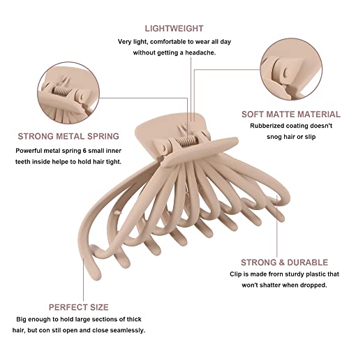 - 【STURDY HAIR CLAWS】-Large claw clips are made by Polycarbonate material with matte finish, It has soft touching, sturdy with a strong spring, more thicker and durable than other plastic claws, hard to break